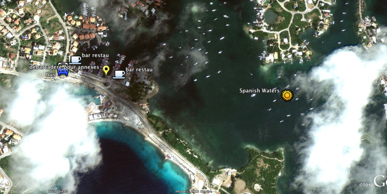 Replaçons nous dans le contexte, voici ci-après une vue google earth de l'île avec le mouillage.