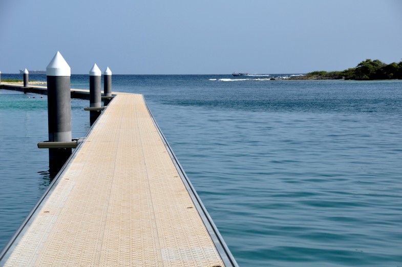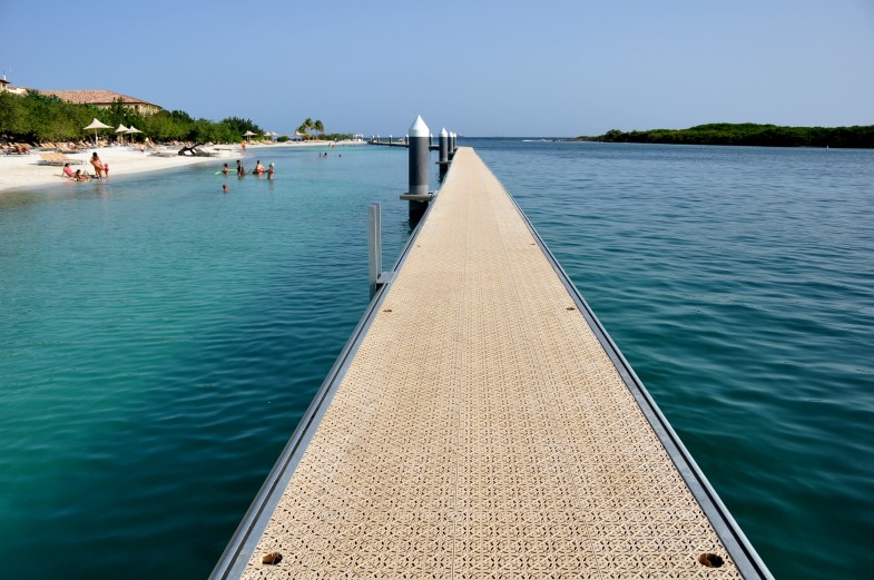 J'aime beaucoup l'aménagement fait à l'entrée du chenal. Un ponton a été construit devant toute la plage (une partie de la plage étant devant le Hyatt et une autre étant publique. On peut s'ammarrer au ponton eprès le Hyatt (et pas devant pout lui laisser une vue dégagée…). Du coup la zone de baignade est protégée et très agréable.