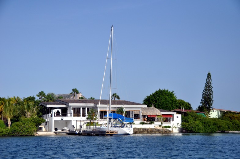 Une fois entré vous allez prendre le chenal qui longe l'hôtel, suivi par une marina puis débouler dans l'immense mouillage constitué de plusieurs anses (au fond de certaines se trouvent des marinas), bordés par de belles villas luxueuses avec ponton particulier pour le yacht.