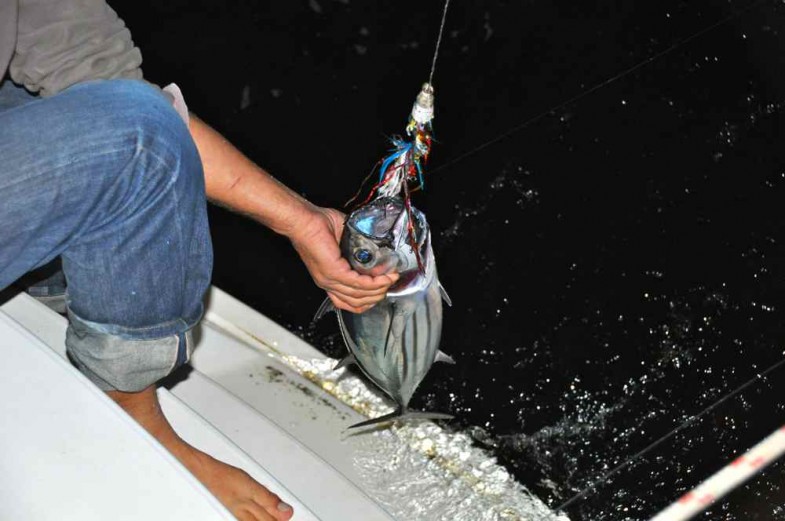 Une fois la bonite tuée et vidée et le 3ème poisson remonté puis relâché, il fallait s'attaquer à celui qui avait décidé de mordre à la canne à pêche. Vous me suivez?