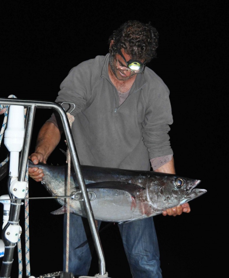 Après 30 mn de lutte, Xavier a remonté le bestiau : un thon de 20kgs selon la police, 25 kgs selon les organisateurs.