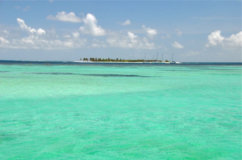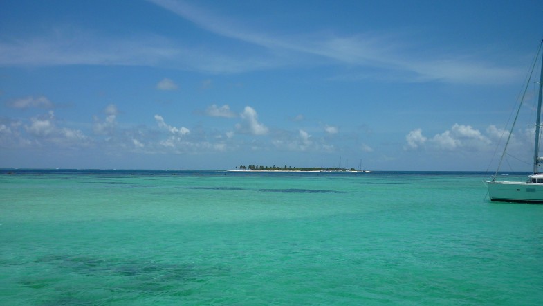 Ensuite nous sommes partis en direction des Tobago Cays. Et là …………. Wouah !! TOUS les clichés des îles de la Mer des Caraïbes que vous avez en tête sont là : l’eau bleue-turquoise-verte-… , une mer chaude, du sable blanc, et… des tortues qui pointent leur nez par-ci par là. C’est juste magique !