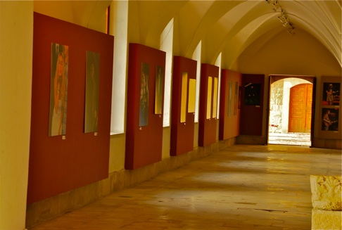 Aile du palais réservée aux hôtes, transformée en galerie de portraits d’artistes venus au festival.