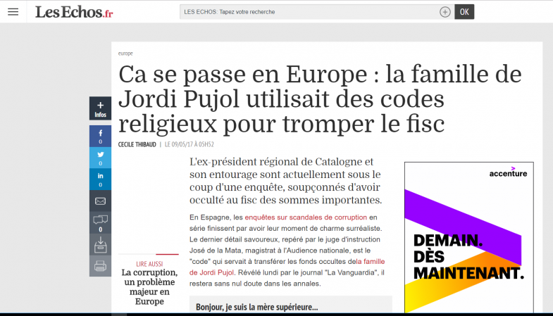 Pour en savoir plus : https://www.lesechos.fr/09/05/2017/lesechos.fr/0212056464923_ca-se-passe-en-europe—la-famille-de-jordi-pujol-utilisait-des-codes-religieux-pour-tromper-le-fisc.htm#